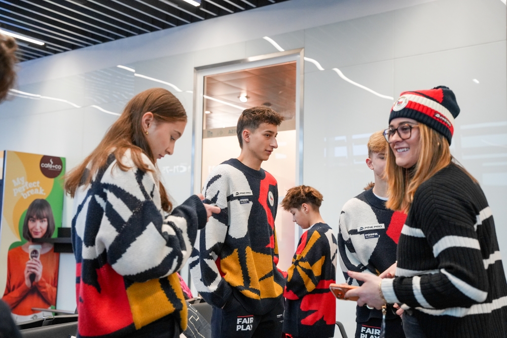 Už před sedmou hodinou ranní se šestice čerstvých ambasadorů setkala za doprovodu rodičů na vídeňském letišti, aby vyrazila za cílem svého třídenního putování. Tímto cílem jsou samozřejmě XXV. Zimní olympijské hry, které pro rok 2026 pro celý svět pořádají italské města Milán, Cortina a další. V dobré náladě se při čekání na svůj let stihli vyfotit s českými hokejovými fanoušky, kteří míří na první vystoupení českého týmu na těchto ZOH (Česko-Kanada, začátek 16:40).